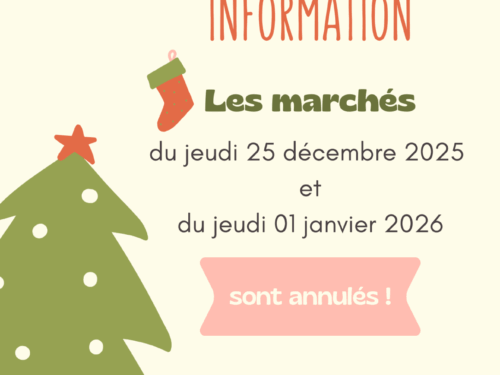 Pour Information Les marchés du jeudi seront annulés pendant les vacances de Noël. En vous souhaitant de bonnes fêtes de fin d'année ! [...] Lire l'article complet Les marchés du jeudi