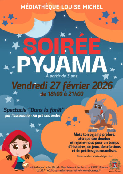 Prochainement Rejoignez-nous à la médiathèque Louise Michel le vendredi 27 février de 18h à 21h pour la traditionnelle "Soirée pyjama" ! A partir de 3 ... vendredi 27/02 Soirée pyjama