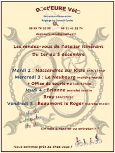 L’atelier Doct’Eure vélo revient à Brionne jeudi 04 décembre sur le marché.