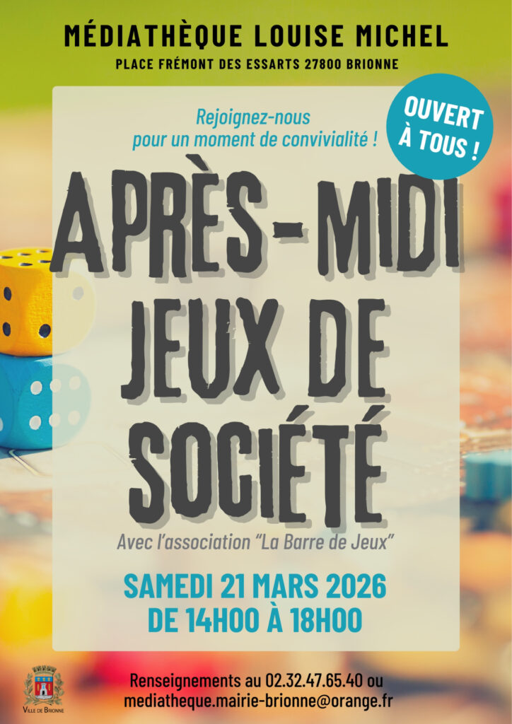 Renseignements au 02.32.47.65.40 ou mediatheque.mairie-brionne@orange.fr