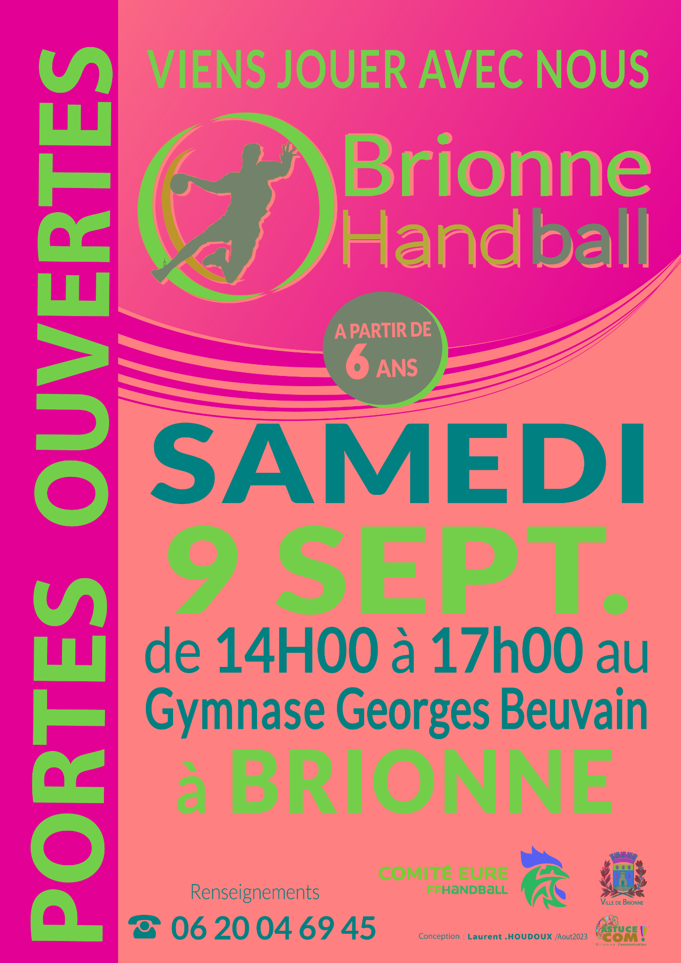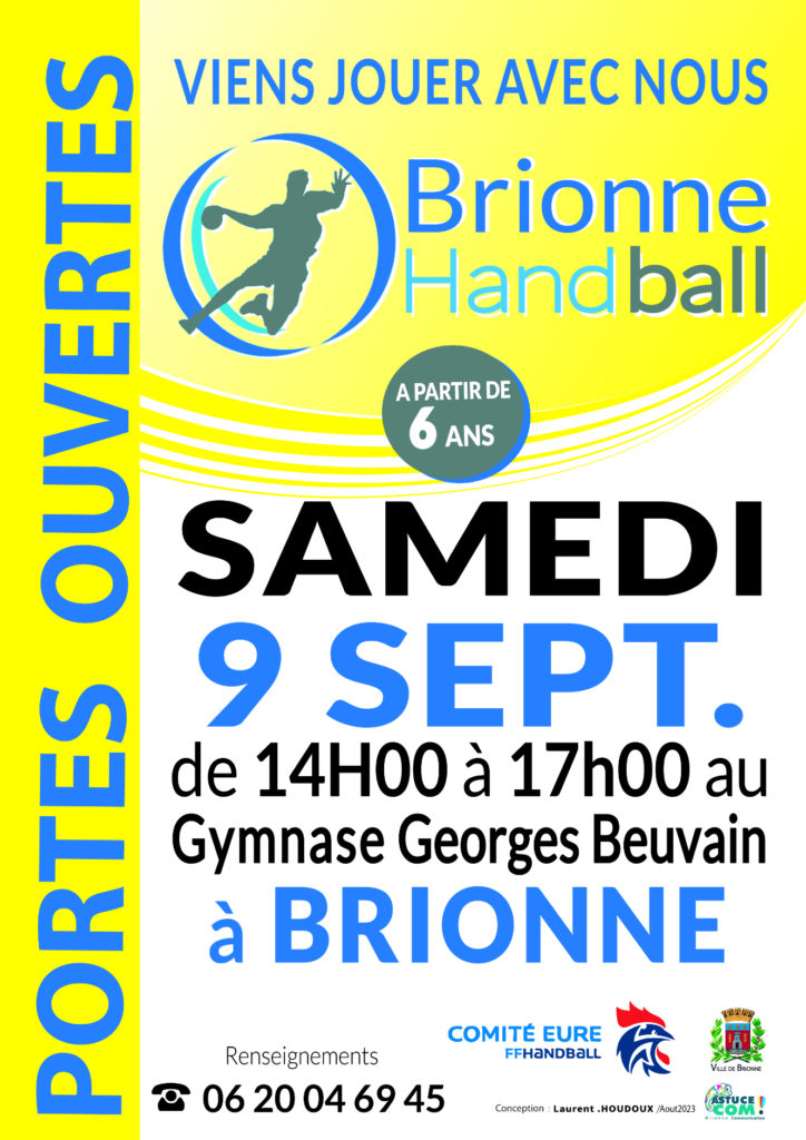 Le club de Hand de Brionne, vous invite aux portes ouvertes samedi 9 septembre de 14h à 17h au Gymnase Georges Beuvain.