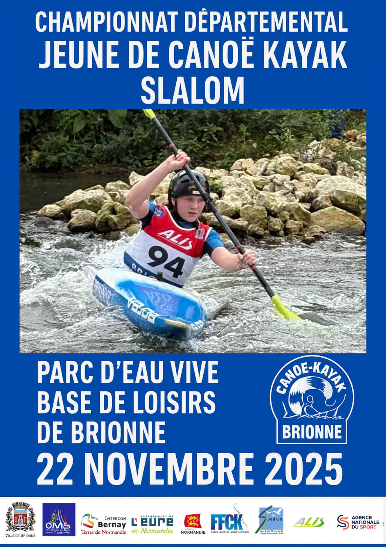 Le championnat départemental de slalom est organisé par club de canoë kayak de Brionne pour les jeunes de 7 à 14 ans.