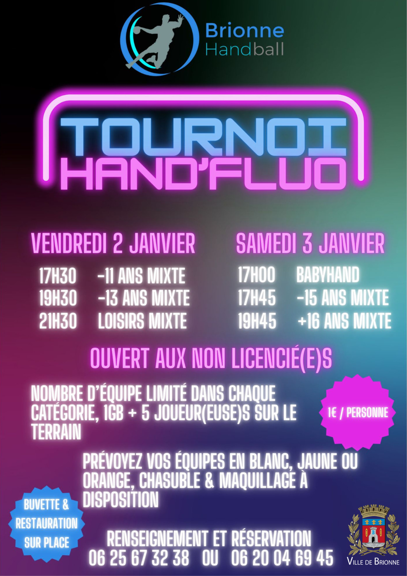 Le club Brionne Handball renouvelle son tournoi amical de HAND’FLUO les vendredi 2 et samedi 3 janvier 2026 au gymnase Georges-Beuvain.