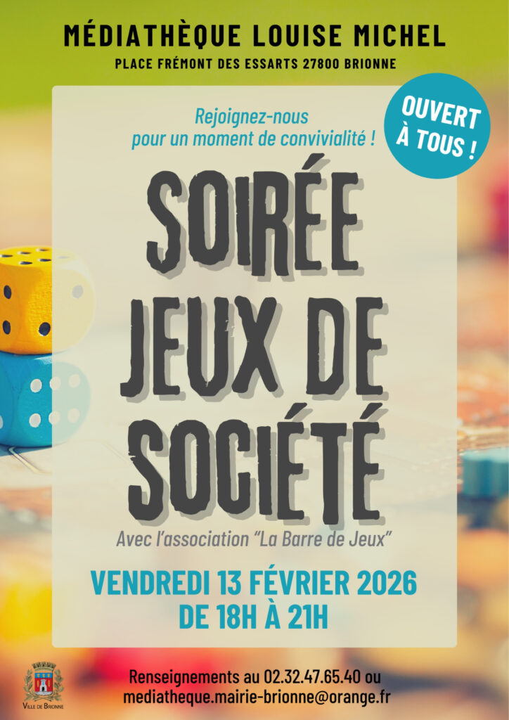 Renseignements au 02.32.47.65.40 ou mediatheque.mairie-brionne@orange.fr