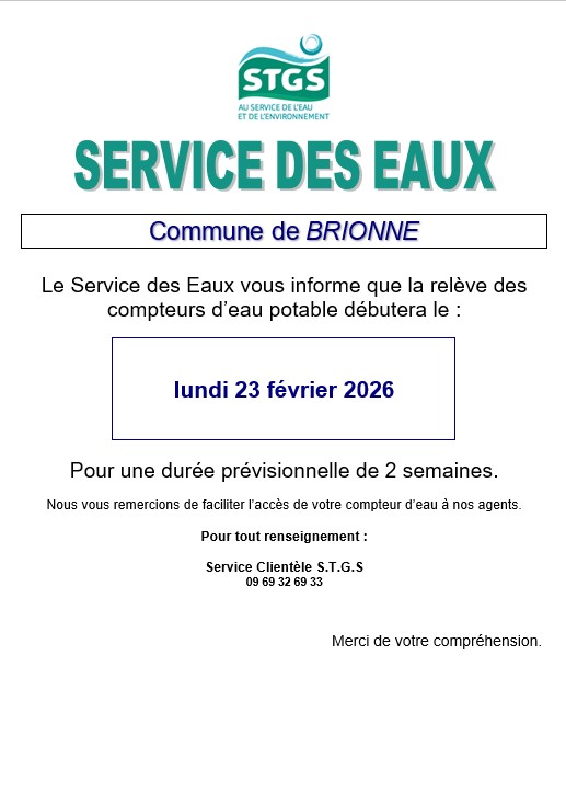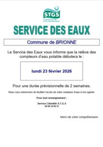 Le Service des Eaux vous informe que la relève des compteurs d’eau potable débutera le lundi 6 mai pour une durée prévisionnelle de six semaines.